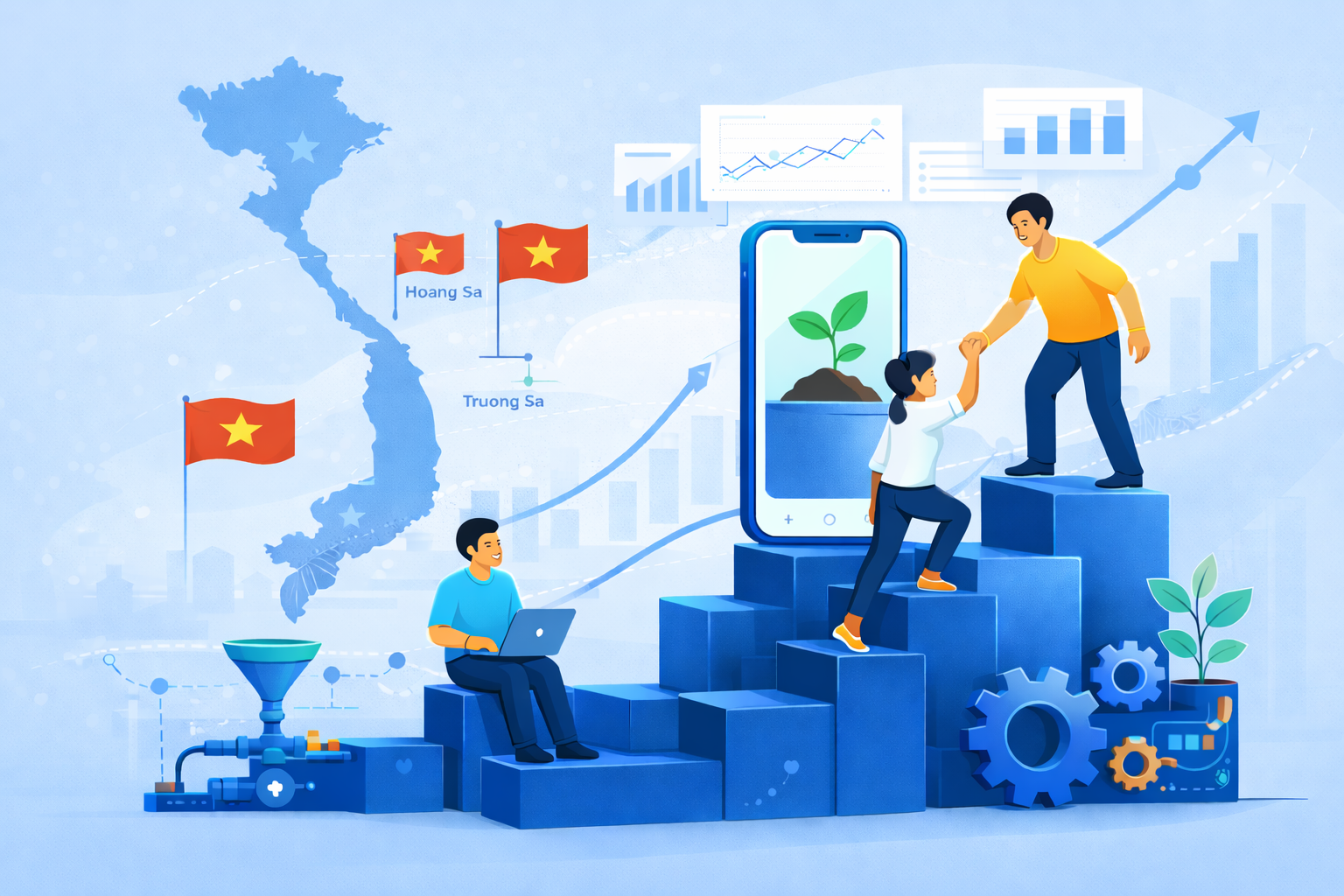 Năm 2026, thị trường ứng dụng di động Việt Nam đã chín muồi: installs ổn định, chi phí UA tăng cao, và quy định pháp lý chặt chẽ hơn. Để tồn tại và phát triển lâu dài, doanh nghiệp cần chuyển trọng tâm từ "tăng trưởng nhanh bằng mọi giá" sang tăng trưởng bền vững – ưu tiên retention, LTV (Lifetime Value), ROAS ổn định, và giá trị thực cho người dùng. Dưới đây là các chiến lược cốt lõi, dựa trên insights từ AppsFlyer và Adjust 2025–2026.
